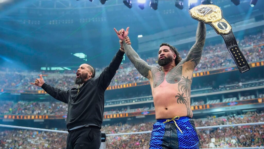 Gunther with multiple chops, and Jey replied with a vicious clothesline. Uso hit a German Suplex and a powerbomb. He followed it up with three splashes from the top. Eventually, Uso applied the sleeper hold and forced Gunther to submit. Jey Uso is your new WWE World Heavyweight Champion. Jimmy Uso joined him in the celebrations after the match.